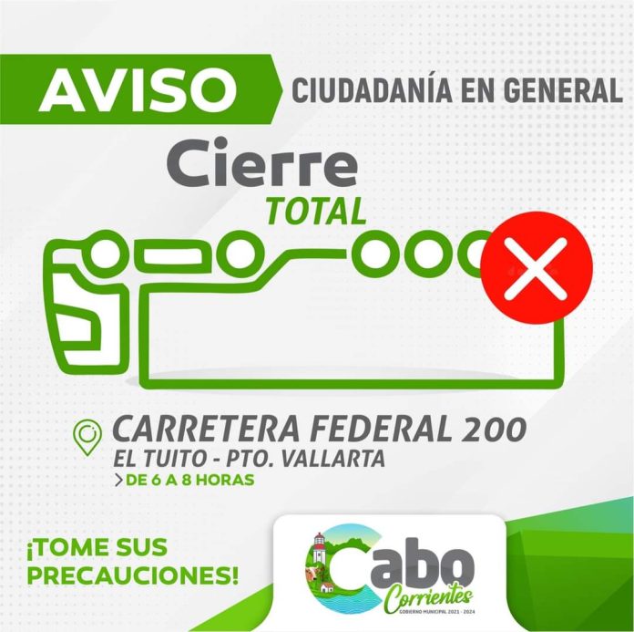 El gobierno municipal de Cabo Corrientes utilizó sus redes sociales para alertar a la comunidad sobre el cierre temporal de la carretera.